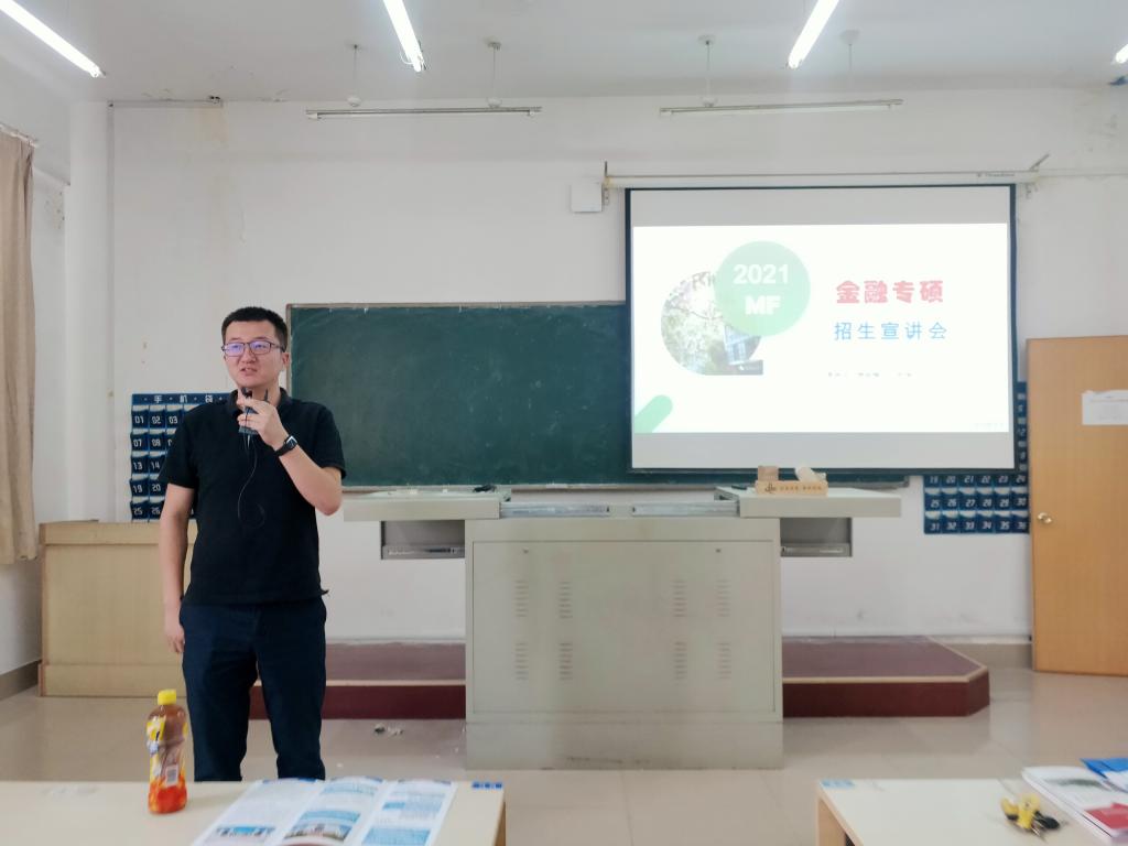 会上,吕承超副院长向学生们介绍了学校和学院的发展历程以及目前的发展规模,并概括讲解了金融专硕的专业设置、专业特色及学生们未来的发展前景,同学们反应热烈,对报考我校金融专硕产生了浓厚的兴趣。