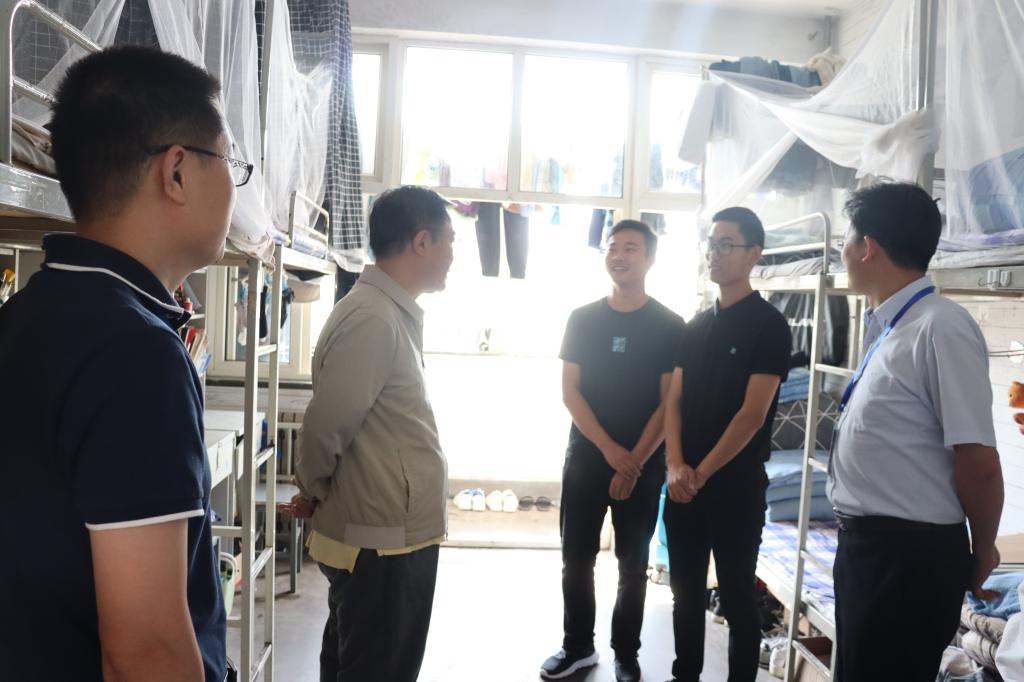 马连湘在学生公寓与学生进行了亲切交谈,并向他们送去节日祝福。交流中,他详细了解了秋季学期开学以来学生们在校学习、生活情况,询问大家面临着哪些实际问题,并希望同学们能够理解学校根据疫情防控形势作出的国庆节放假安排。他嘱咐大家在校期间加强体育锻炼,作息要规律,保持好个人和公寓卫生,假期外出做好个人防护,与学校共同努力做好疫情防控工作,确保校园安全和谐稳定。同学们对领导老师的到来表示热烈欢迎和感谢。2017级学生肖映彤住在南苑五号公寓,他表示:“在国庆之际,又逢中秋佳节,见到学校领导十分激动,深切地感受到学校对学生的浓浓关怀之情。自己一定会全力配合做好学校疫情防控工作,快乐度过这个特别的假期。”宿舍成员姜延杰表示,“作为学生骨干一定在疫情防控形势下,根据学校防疫要求组织带领同学们在双节期间遵守制度,让大家在校园之中度过一个温馨而不失热闹的节日”。107宿舍舍长崔祚说,“节日期间学校领导百忙之中到我们宿舍走访,我们感受到领导对我们的关心,让我们离家较远的学生感受到亲人般的温暖!”