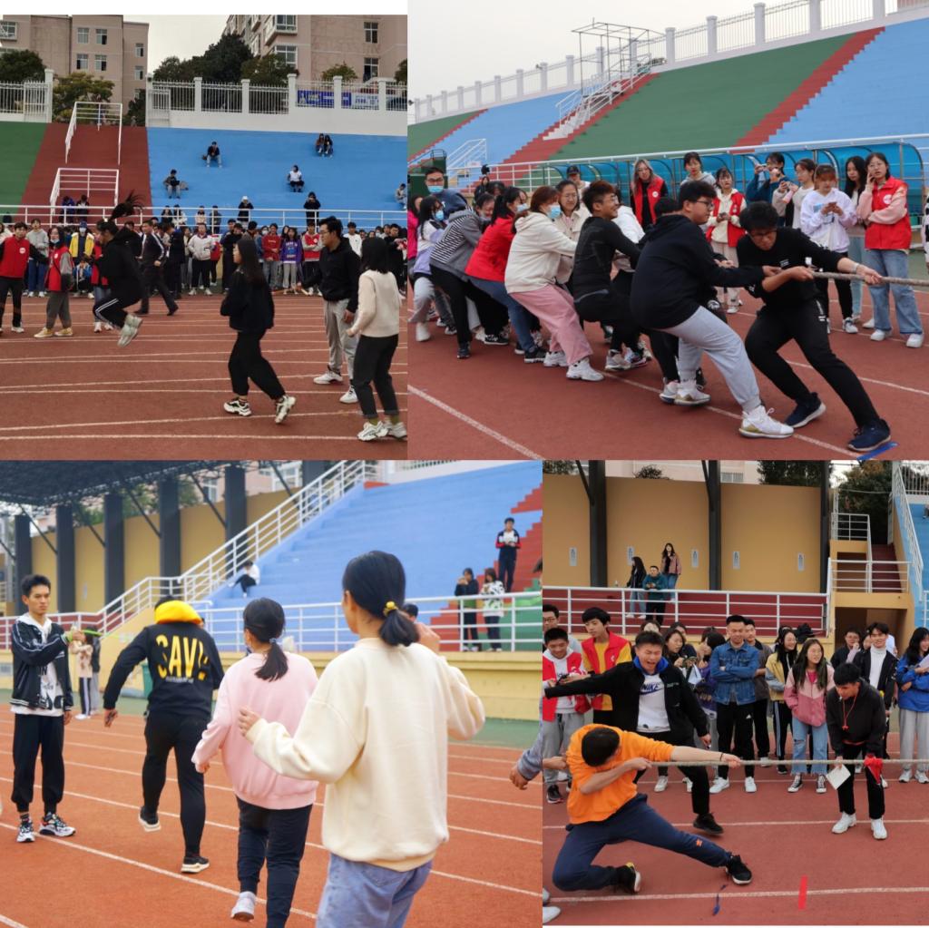 于南苑操场举行欢乐跳大绳和拔河趣味运动会活动。学生会指导老师、2018级辅导员高守朋,学生会工作人员和2020级新生全体同学参加。