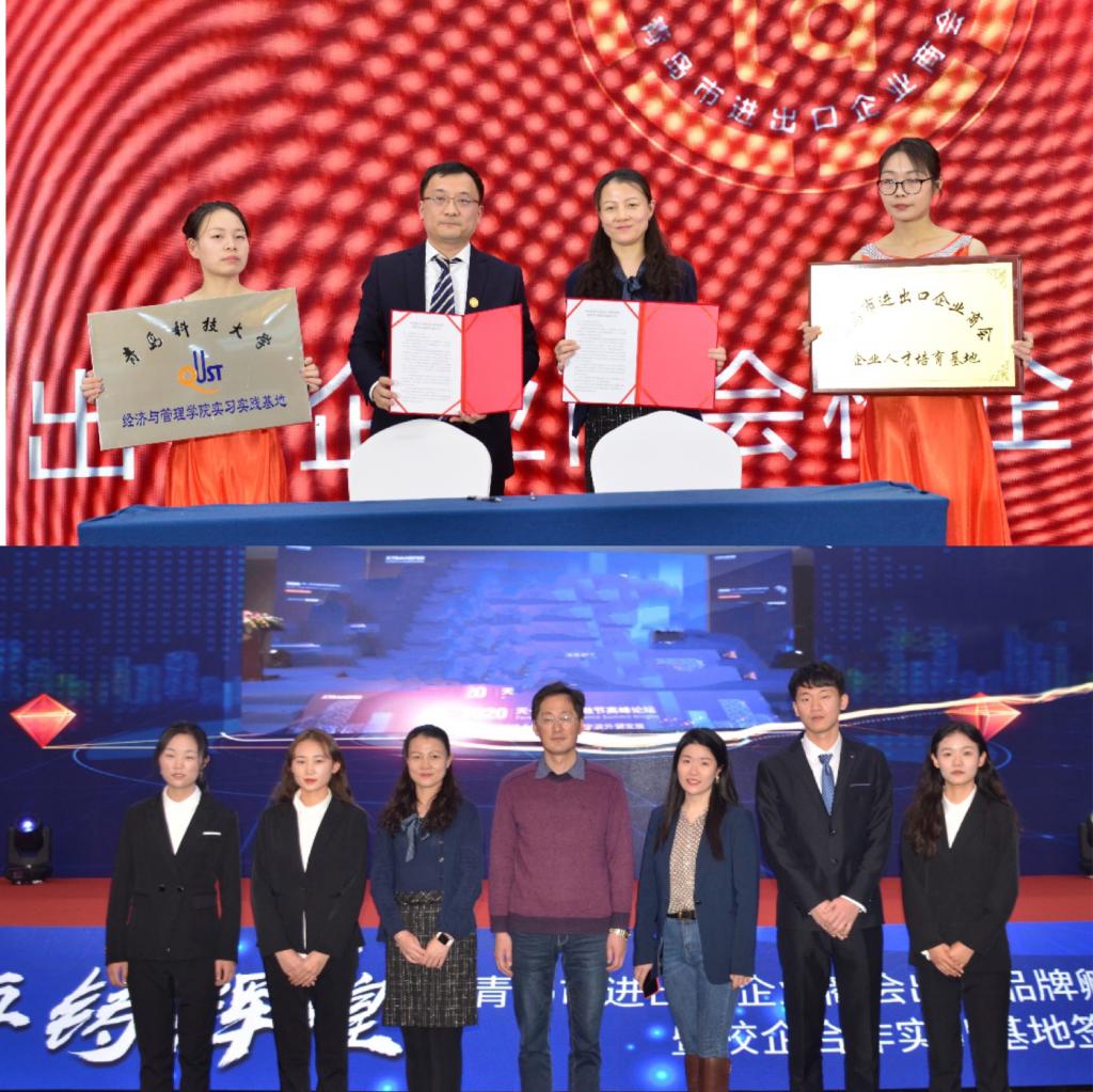 授奖仪式在青岛市进出口企业商会组织的“2020青岛市进出口行业峰会”上隆重进行。之后,举行了国际经济与贸易系与青岛市进出口企业商会实习基地签约仪式。青岛市进出口企业商会相关负责人、国际经济与贸易系负责人及教师代表出席了签约仪式。