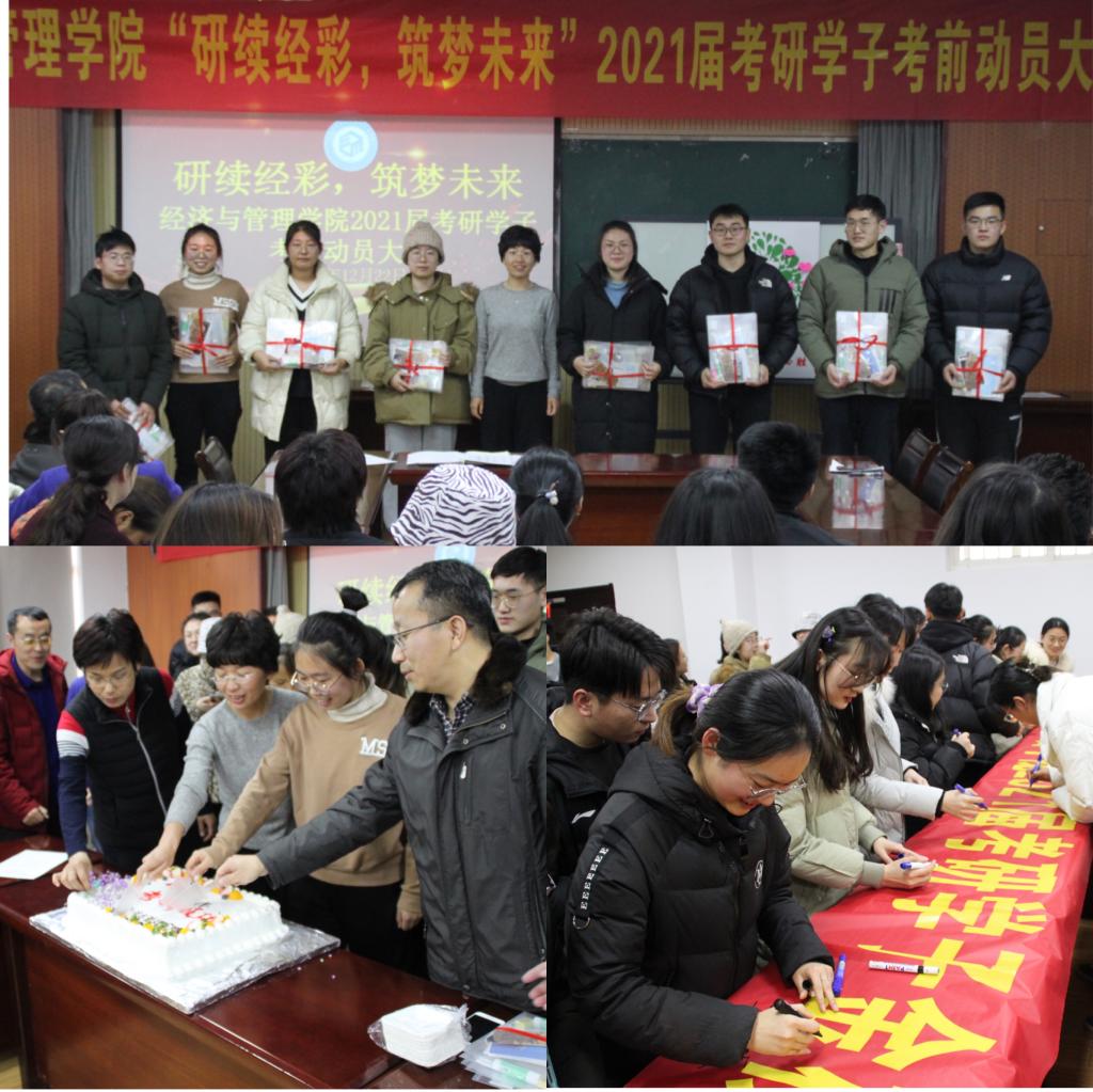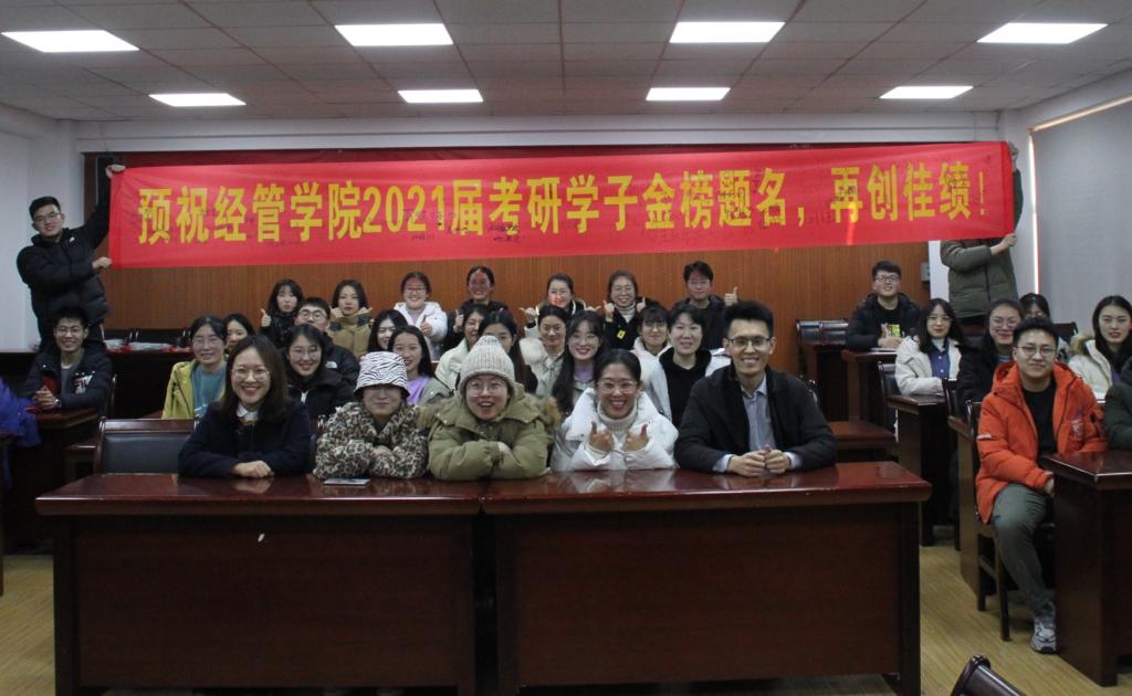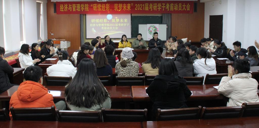 “‘研’续‘经’彩,筑梦未来”2021届考研学子考前动员大会于经管楼419举行,学院副院长宫攀、各系主任、2017级辅导员和考研学生代表参加了本次会议,会议由辅导员张鸣主持。