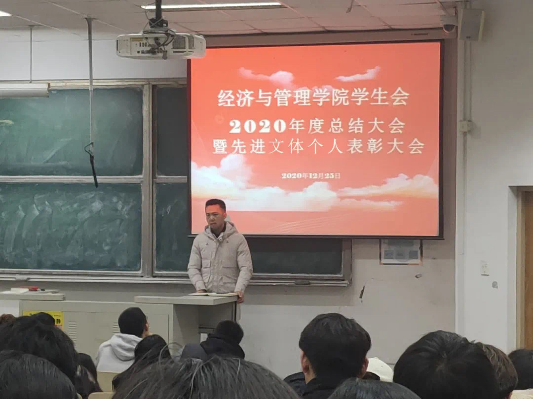学生会于弘毅楼E102室举行2020年度工作总结暨先进文体个人表彰大会。会议由学生会指导老师、18级辅导员高守朋主持,学生会全体成员及优秀文体活动获奖代表近150人参加了本次会议。