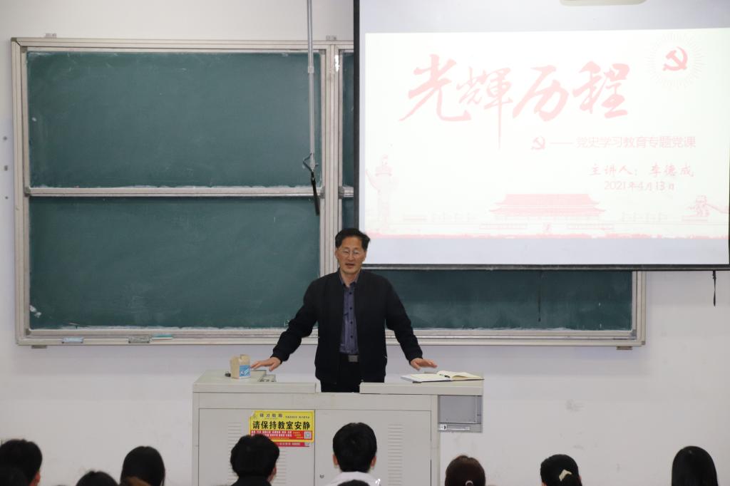 在“党史学习教育”专题党课讲授中,李德成指出,“学党史,悟思想,办实事,开新局”是学习党史的总体要求和一条主线,并通过强调习近平总书记对学习党史提出的9方面要求,引导同学们积极学习党史,深入学习贯彻习近平总书记重要讲话精神。随后,李德成以中国共产党百年历史为脉络,围绕党史中的重要历史时期和伟大壮举,引经据典地向同学们地阐明了中国共产党在国家发展过程中不可撼动的重要历史地位。最后,李德成回归党的性质与宗旨,阐述了其中蕴含的真正内涵,鼓励同学们在波澜壮阔的党史画卷中源源不断地汲取中国共产党人们伟大的智慧成果。