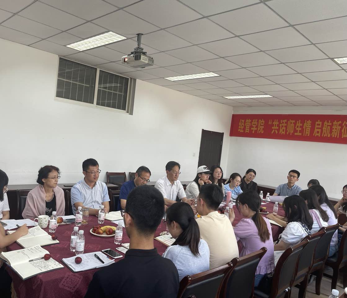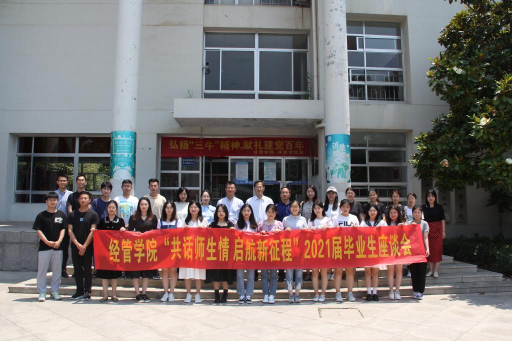 “共话师生情 启航新征程”2021届毕业生座谈会在经管楼415会议室举行。学院党委书记李德成、院长李勋来、党委副书记兼副院长刘跃宁,各系教师代表、毕业班辅导员以及各专业优秀毕业生代表共同参加了此次座谈会。座谈会由2021届本科生毕业班辅导员张显全主持。