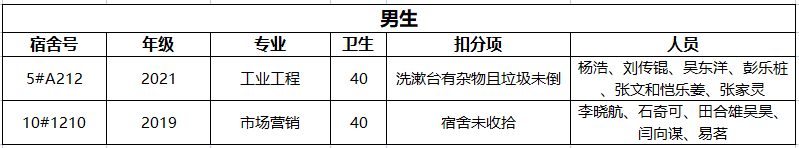 卫生检查结果及扣分细则请见附件,请各年级对照问题监督好不合格宿舍的整改。