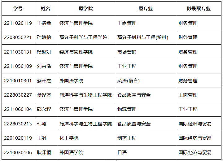 久久小说 于2023年3月14日举行转专业考核,经过严格的面试考核,并按照分数从高到低的排序,现将拟录取名单公布如下: