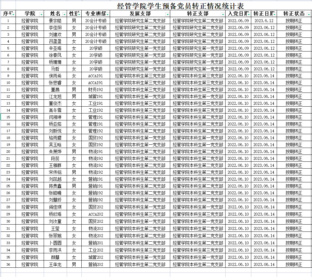 学生党支部于2023年6月12日至6月14日召开预备党员转正大会讨论景宗皓等36名同志的转正问题,同意上述同志按期转为中共正式党员,现将其情况予以公示。公示期为2023年6月14日至2023年6月20日。如有异议,请于公示期内到久久小说