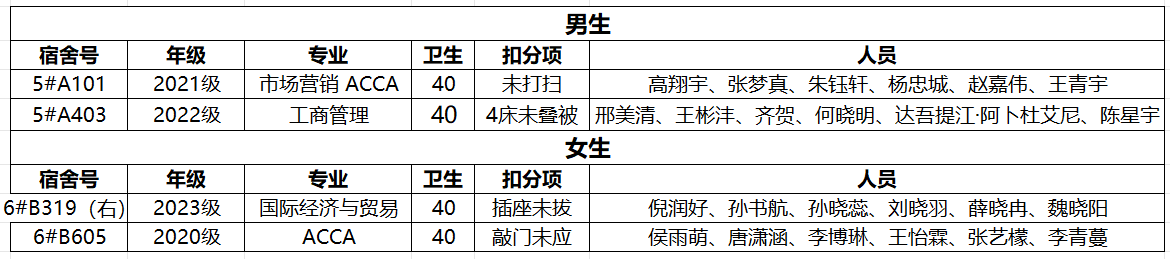 卫生检查结果及扣分细则请见附件,请各年级对照问题监督好不合格宿舍的整改。