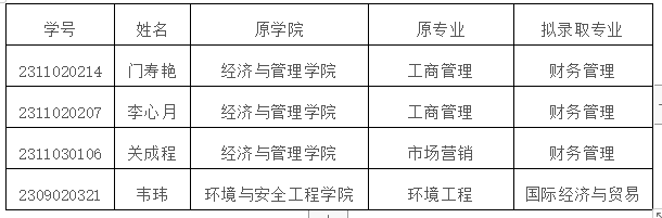 久久小说 于2024年3月7日举行转专业考核,经过严格的面试考核,并按照分数从高到低的排序(排名按转入专业分别排序),现将拟录取名单公布如下:
