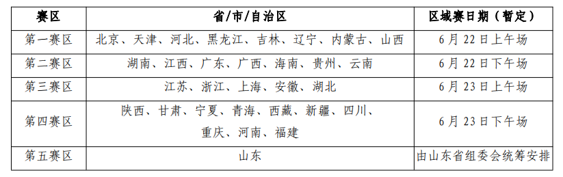 (一)区域赛赛区划分