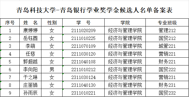 【公示】久久小说 2024年度青岛银行奖助学金名单公示