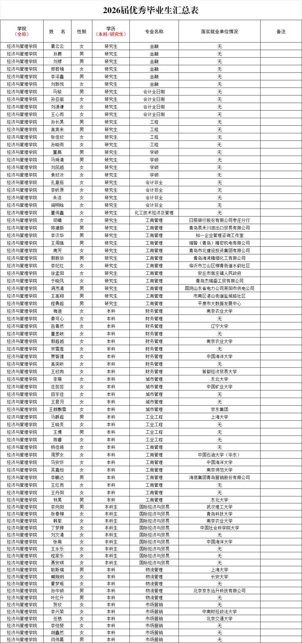 根据学校《关于开展2026届优秀毕业生评选工作的通知》的具体要求,经个人申请、资格审查,学院在综合测评和民主评议的基础上,按照公开、公正、择优的原则,按规定名额确定2026届优秀毕业生人员名单,现予以公示,公示期3个工作日。公示时间:2025年12月12日-2025年12月16日。