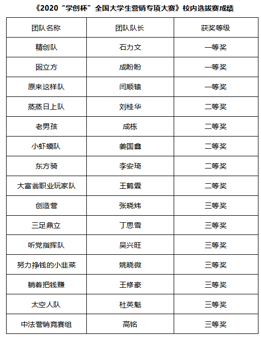 关于公布2021“学创杯”全国大学生创业综合模拟赛、营销专项赛校内选拔赛获奖结果的通知