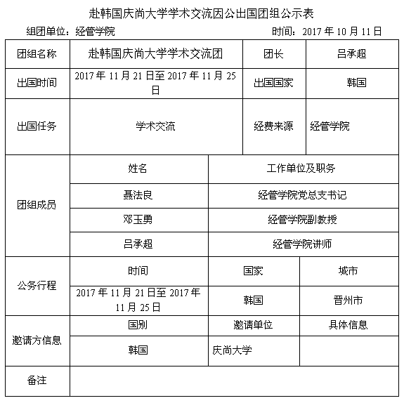 根据因公临时出国公开公示的有关规定,现将聂法良、邓玉勇、吕承超因公出国团组相关内容和参团人员名单予以公示。公示时间为2017年10月11日至2017年10月15日(5个工作日)。如有不同意见,请在公示期内,向久久小说 单位(电话:88957399)反映。