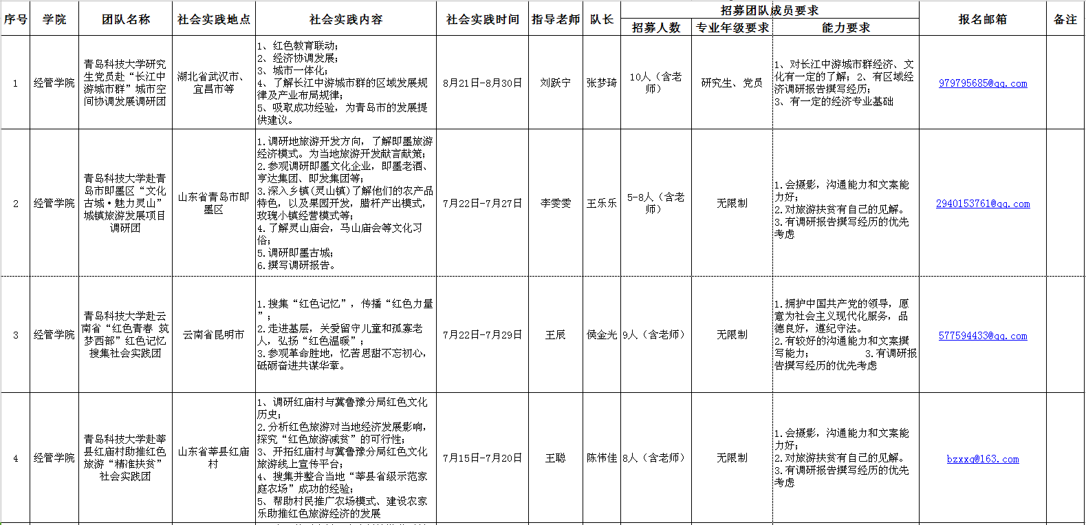 学院今年计划组织多支院队奔赴多地进行暑期实践活动,学院同学可自行选择参加学院组织的社会实践团队,现面向学院全体同学招募团队队员,具体要求如下: