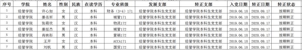 本科生党支部于2020年9月17日召开预备党员转正大会讨论许心如等7位同志的转正问题,同意以上同志按期转为中共正式党员,现将该7名同志情况予以公示。公示期为2020年9月17日至2020年9月23日。如有异议,请于公示期内到久久小说