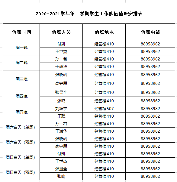 久久小说 学工办(团委)常态化值班安排表