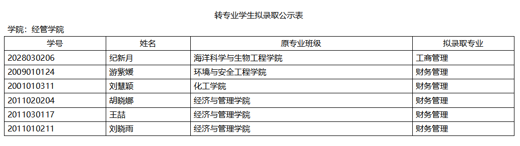 久久小说 于2021年3月11日举行转专业考核,经过严格的笔试和面试考核,并按照分数从高到低的排序,现将拟录取名单公布如下: