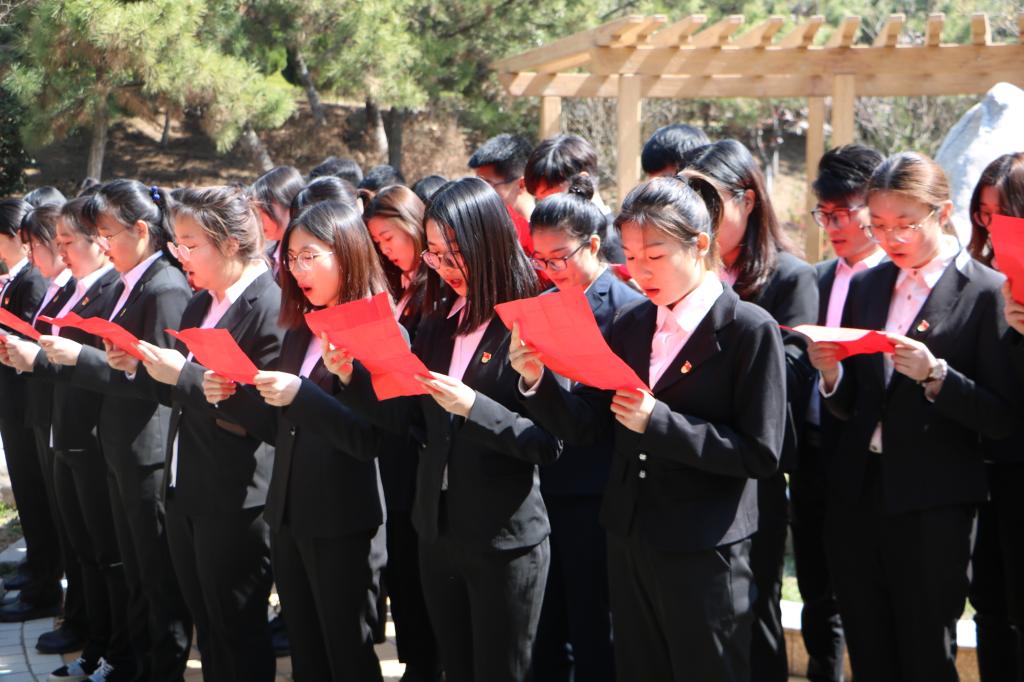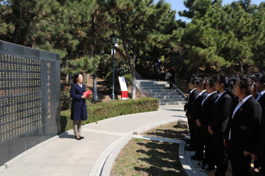 学生党支部于崂山烈士陵园开展党建活动,校团委副书记张玉老师出席,活动由国贸161班陈永洁主持。