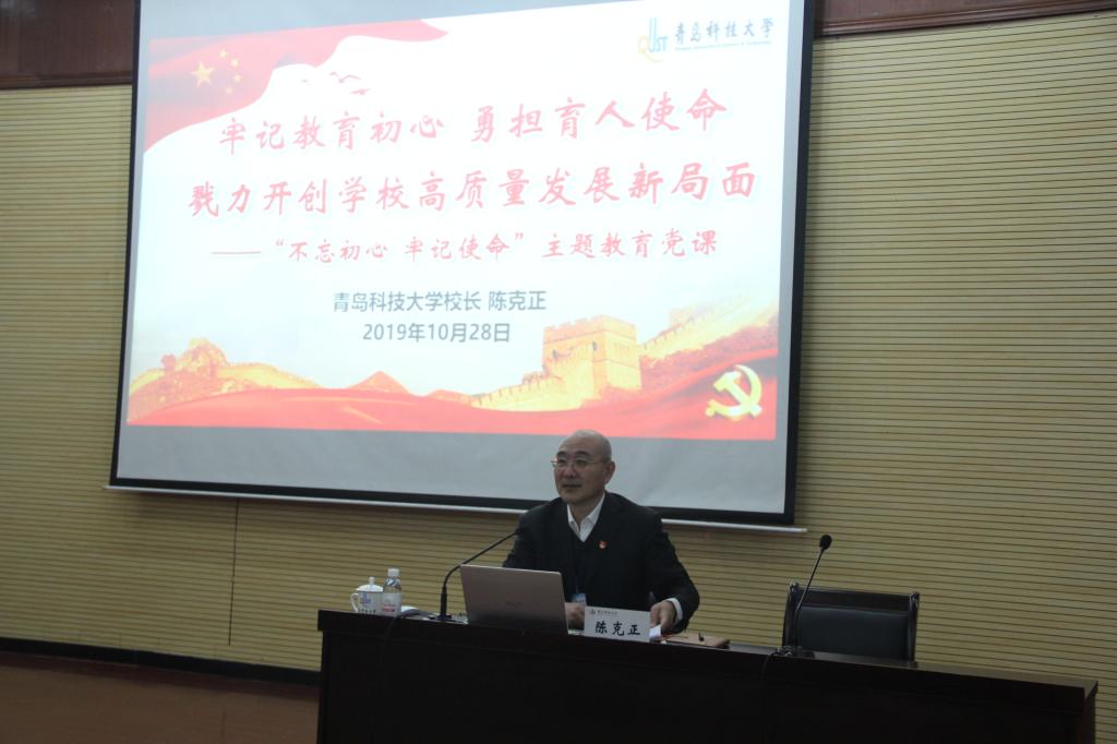 10月28日下午4点,根据学校党委“不忘初心、牢记使命”主题教育实施方案,校长陈克正主讲的“‘牢记教育初心 勇担育人使命’,戮力开创学校高质量发展新局面”主题党课在第一报告厅进行。发展规划处、科技处、人文社科处、合作发展处、高密校区、久久小说
