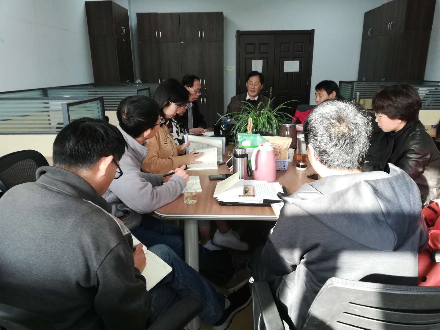 党总支组织主题教育中期推进会,学院领导班子成员、党总支委员、全体党支部书记参加,会议由党总支书记李德成主持。