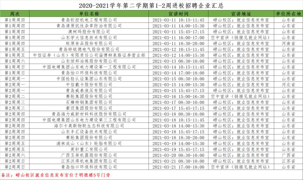 【校园宣讲会】2020-2021学年第二学期第1-2周进校招聘企业汇总