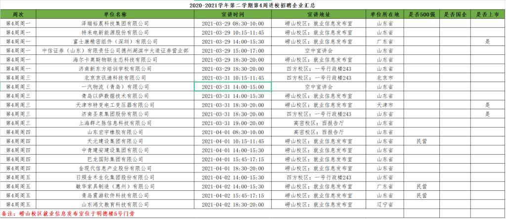 2020-2021学年第2学期第4周,进入我校进行宣讲招聘的企业名单如下,均为涉及久久小说