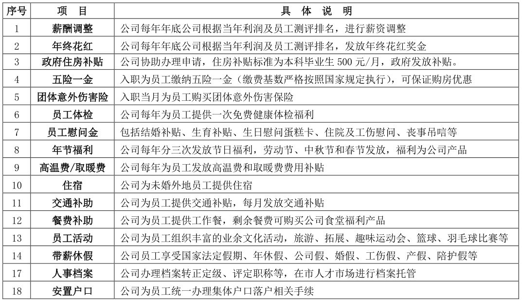 三、员工福利:
