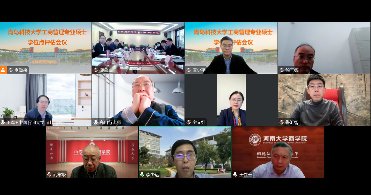 313会议室举行。校党委常委、副校长李少远出席会议并致辞。评估专家组由来自省内外各高校、科研院所、企业的七名专家学者组成,成员包括国务院学位委员会工商管理学科评议组成员,西安交通大学教授、博士生导师高山行;国务院学位委员会工商管理学科评议组成员,中国财政科学研究院党委委员、副院长徐玉德;教育部高等学校工商管理类专业教学指导委员会委员,河南大学商学院院长、博士生导师王性玉;山东省MBA教育指导委员会主任,山东大学管理学院院长、博士生导师武常岐;中国石油大学(华东)经济管理学院博士生导师王军;青岛华通国有资本投资运营集团有限公司财务部部长、高级会计师宁文红;尚道控股集团董事长,山东泰山产业领军人才鲁汇智。其中高山行为工商管理专业硕士学位授权点评估专家组组长、徐玉德为会计专业硕士学位授权点评估专家组组长。研究生院院长匡少平主持会议。