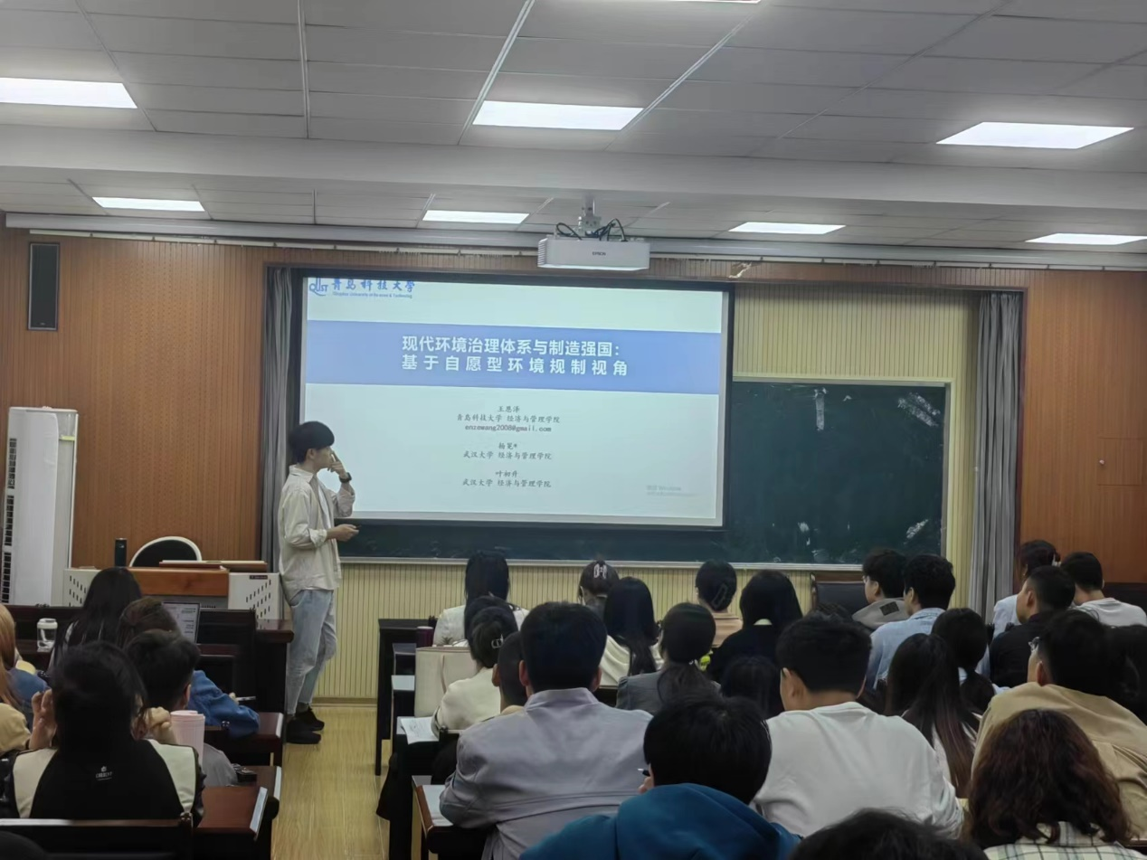特聘副教授王恩泽老师,以“现代环境治理体系与制造强国,基于自愿型环境规制视角”为主题,为现场师生带来一场深入浅出的学术分享。