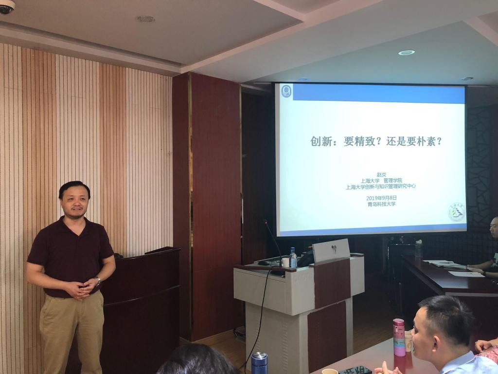 报告开始前,杨皎平教授对赵炎教授的到来表示热烈欢迎,并就赵炎教授的个人情况向全体师生作了简要介绍。赵炎,是上海大学管理学院教授,博士生导师,创新与知识管理研究中心主任,国家自然科学基金委员会通讯评议专家,中国生产力学会常务理事,中国技术管理专业委员会常务理事。