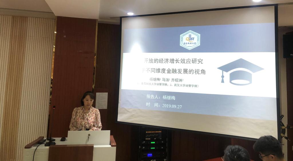 接着,杨继梅教授与大家分享了题目为《金融开放的经济增长效应研究——基于不同维度金融发展的视角》的论文。该论文将“经济增长”设为因变量,将“金融开放”设为重要解释变量,将“金融发展”设为门槛变量,将“贸易开放、人口增长、政府支出、平均投资率”设为控制变量。通过门槛效应检验,得出一系列结论:金融机构规模、金融市场规模和金融机构效率作为门槛变量时存在双重门槛,金融机构作为门槛变量时仅存在一个门槛值,金融市场效率作为门槛变量时,不存在门槛效应。而刘霞辉、黄少安教授对金融开放话题发表了自己独到见解,使得大家受益匪浅。
