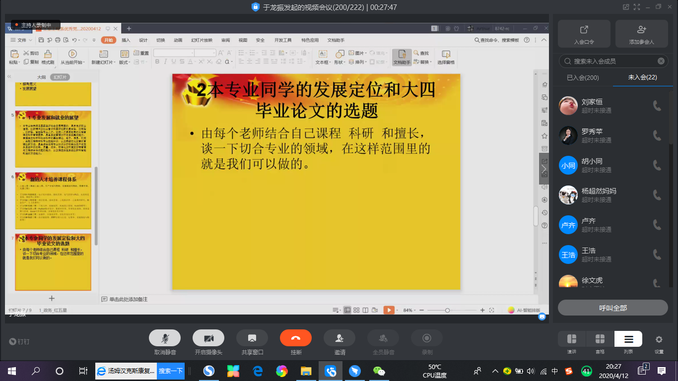 工业工程专业师生空中交流会暨专业发展就业动员和毕业年级中期答辩预热会成功举办