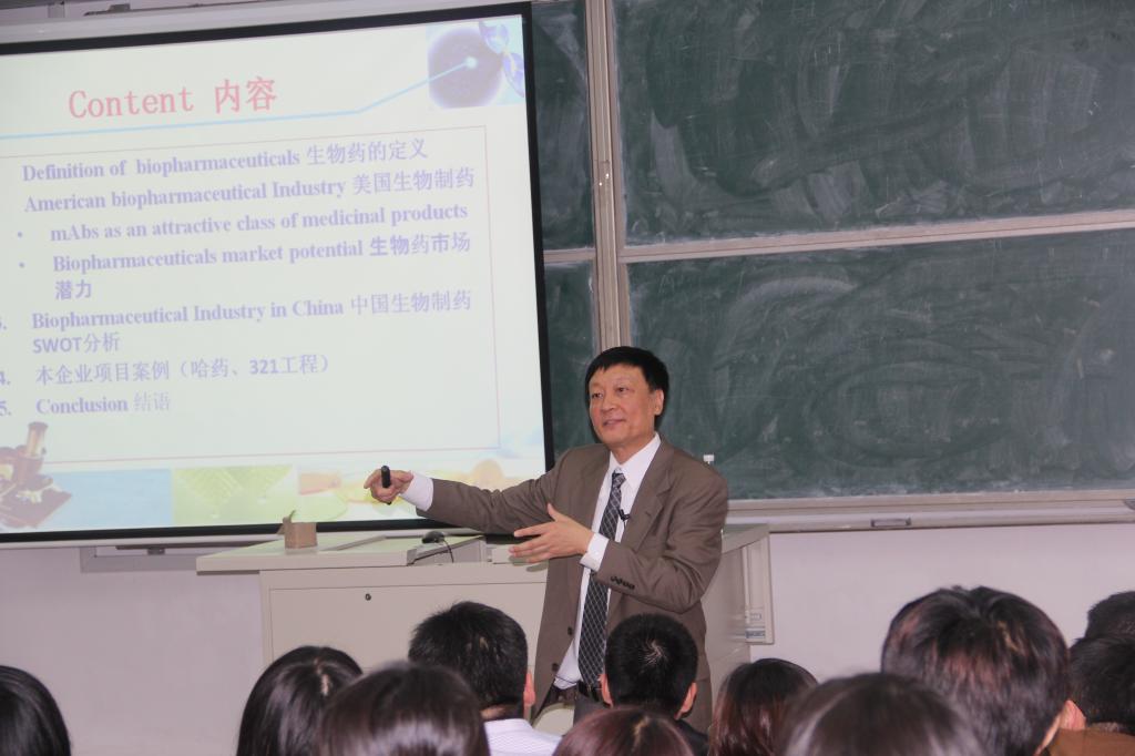 曹杰教授分别从生物药的定义、美国生物制药、生物制药的发展现状、生物制药发展前沿技术等方面介绍了生物制药的发展及现状,同时运用SWOT分析讲解中国生物制药企业的发展前景及发展潜力,曹杰教授还结合大量案例跟在座人员分享了他的创业经历。