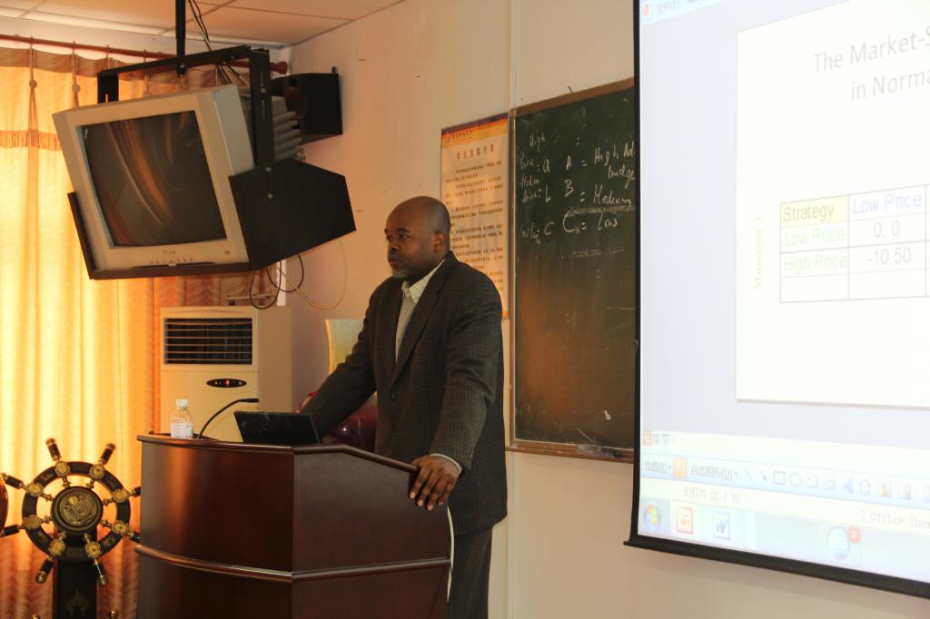 Game Theory也就是我们常说的博弈论,Rosmy Jean Louis分别从博弈论的定义、局中人、战略支配地位三个方面阐述了博弈论,就在现实的商业竞争中如何更好地利用博弈论来取得商业战略上的胜利发表了自己的观点,并根据自己的实际经验,举了大量实例,丰富了同学们的视野,受到了同学们的一致好评。