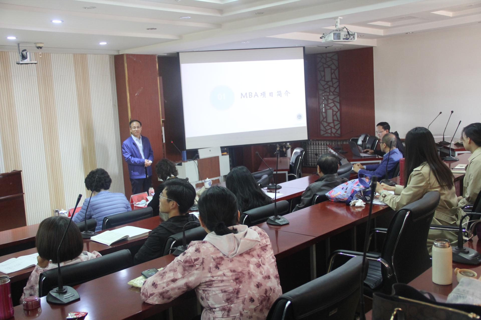首先,李勋来院长对王萍主任的到来表示热烈欢迎,并从学校MBA项目简介、招生规模、师资力量、课程设置、培养质量、阶段总结等六个方面,对我校MBA教育项目十多年的发展历程进行了详尽地汇报。