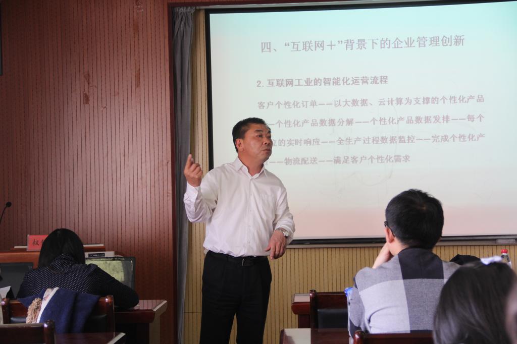 讲座中,权锡鉴教授结合自身丰富的实践经验,结合青岛本地的知名企业青啤、海尔、红领集团等案例,从我国企业改革的历程、现代企业制度的基本特征、企业管理的重点内容、“互联网+”背景下的企业管理创新四个方面对现代企业制度和管理创新进行了全面性的梳理。权教授在讲座过程中用管理学问题启发学员思考,指出管理理念对企业发展的重要性,强调大数据时代企业管理模式的变革与创新对企业竞争的重要性。智能工业是个大课题,需要在座的各位学员继续探究。权教授深入浅出的讲解,使得学员们受益良多。