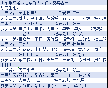 学子在接下来的山东半岛第六届案例分析大赛复赛、决赛中取得优异成绩!