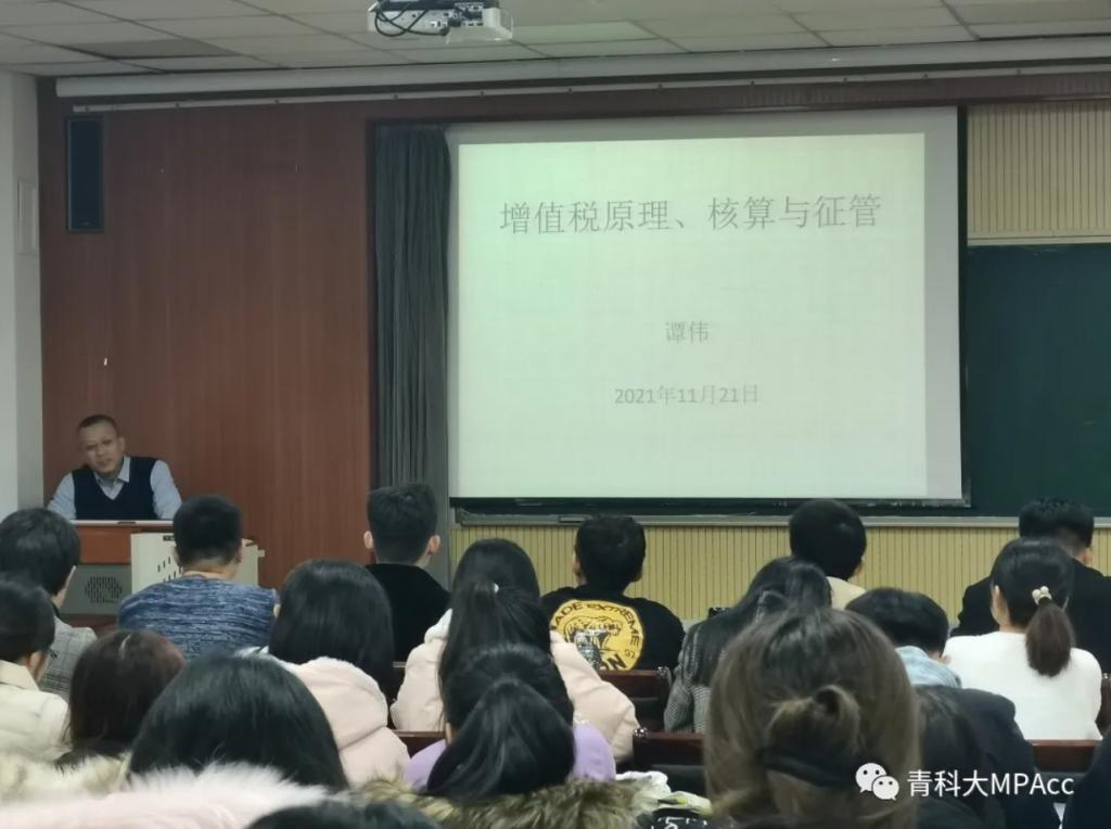 2021级会计专硕研究生聆听了此次报告。讲座围绕增值税原理、增值税的优点等方面展开。