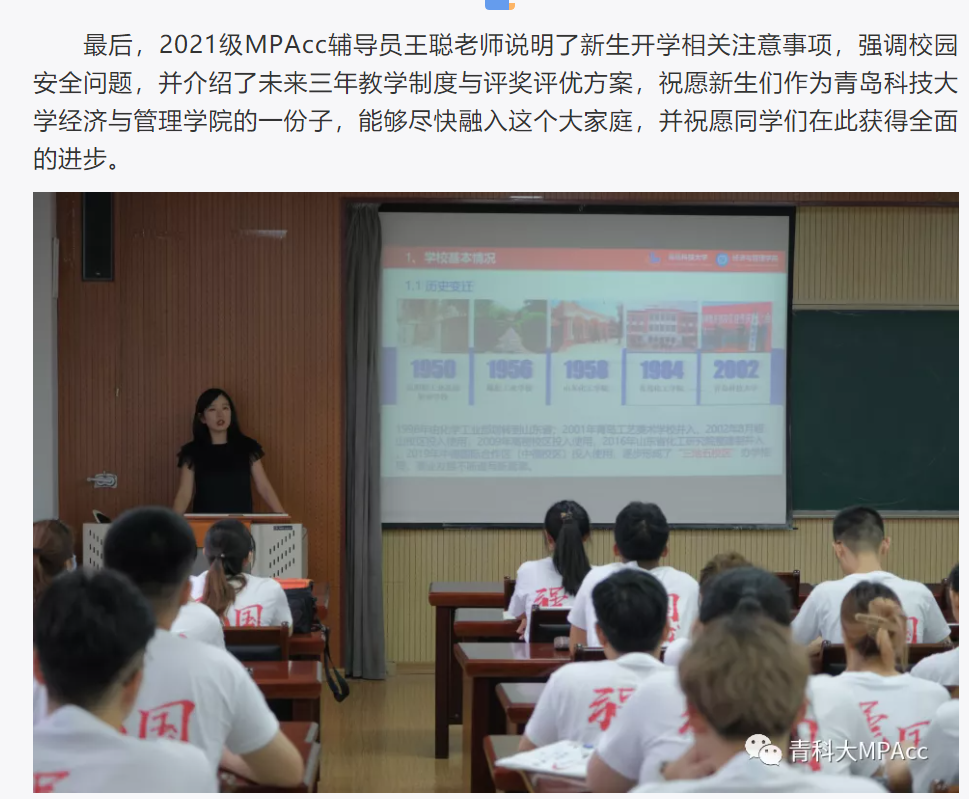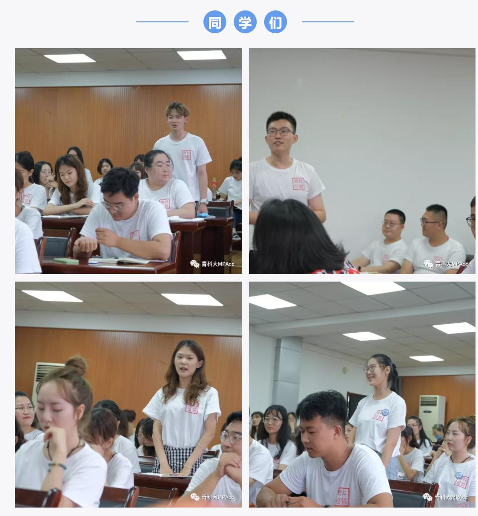 MPAcc项目优势所在,他鼓励同学们多学、多问、多感悟,不断提升自身的同时凝聚更为雄厚的“青科大MPAcc”品牌力量。至此