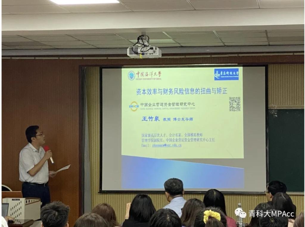 楼419教室,开展了MPAcc大讲堂主题讲座,本次讲座的主题是:资本效率与财务风险信息的扭曲与矫正,主讲人是中国海洋大学王竹泉教授。
