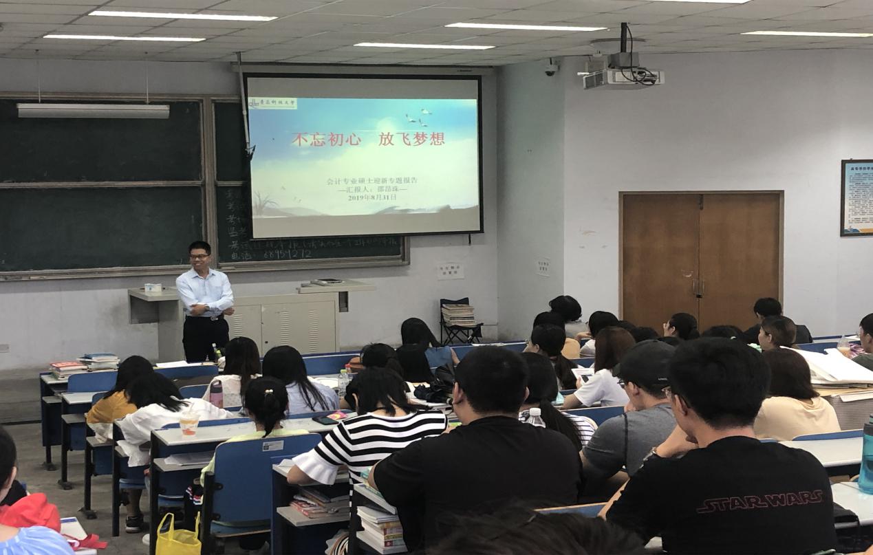 于8月31日上午9点特邀校外导师高级会计师邵昂珠老师为全体同学们进行了“不忘初心 放飞梦想”主题入学教育讲座。邵老师首先肯定了会计的就业前景,并对会计人的人生分阶段进行了规划。随后,对CPA 、注册税务师证、证券从业资格证、ACCA等证书进行了详细的介绍。最后,主要对会计相关的职业发展进行了数据化分析。按不同省份、不同工作岗位进行薪资对比,让学生更理智的了解了行业发展水平,以及未来的目标。此次入学教育内容丰富,意义重大,这场交流会为新生制定短期目标并合理安排三年的研究生学习生活奠定了基础。